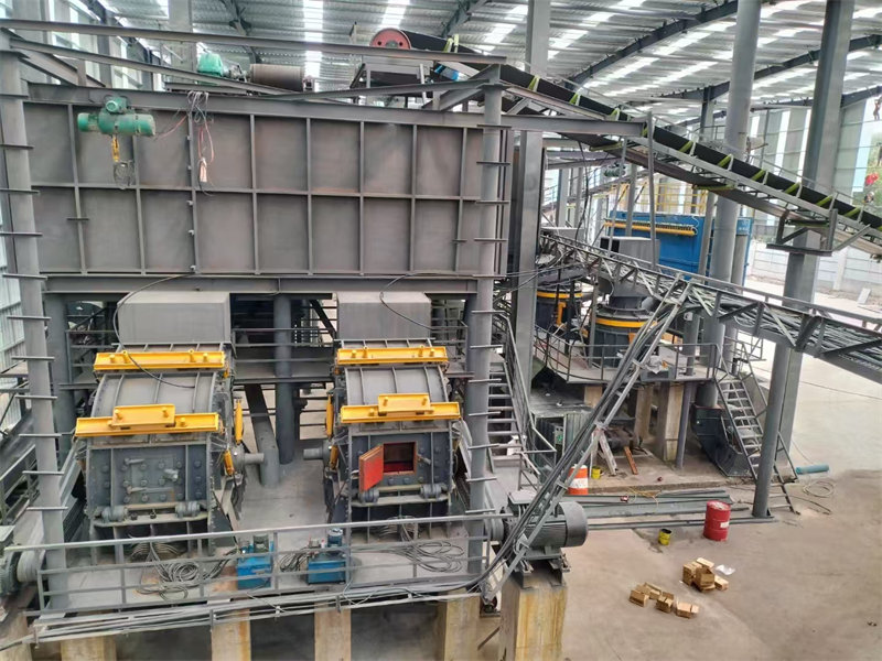 頭破采用1臺(tái)PE1200*1500顎式破碎機(jī);二破采用2臺(tái)FKF系列反擊式破碎機(jī)、2臺(tái)FKL系列沖擊式制砂機(jī)、篩分設(shè)備采用4臺(tái)F3YK系列圓振動(dòng)篩。